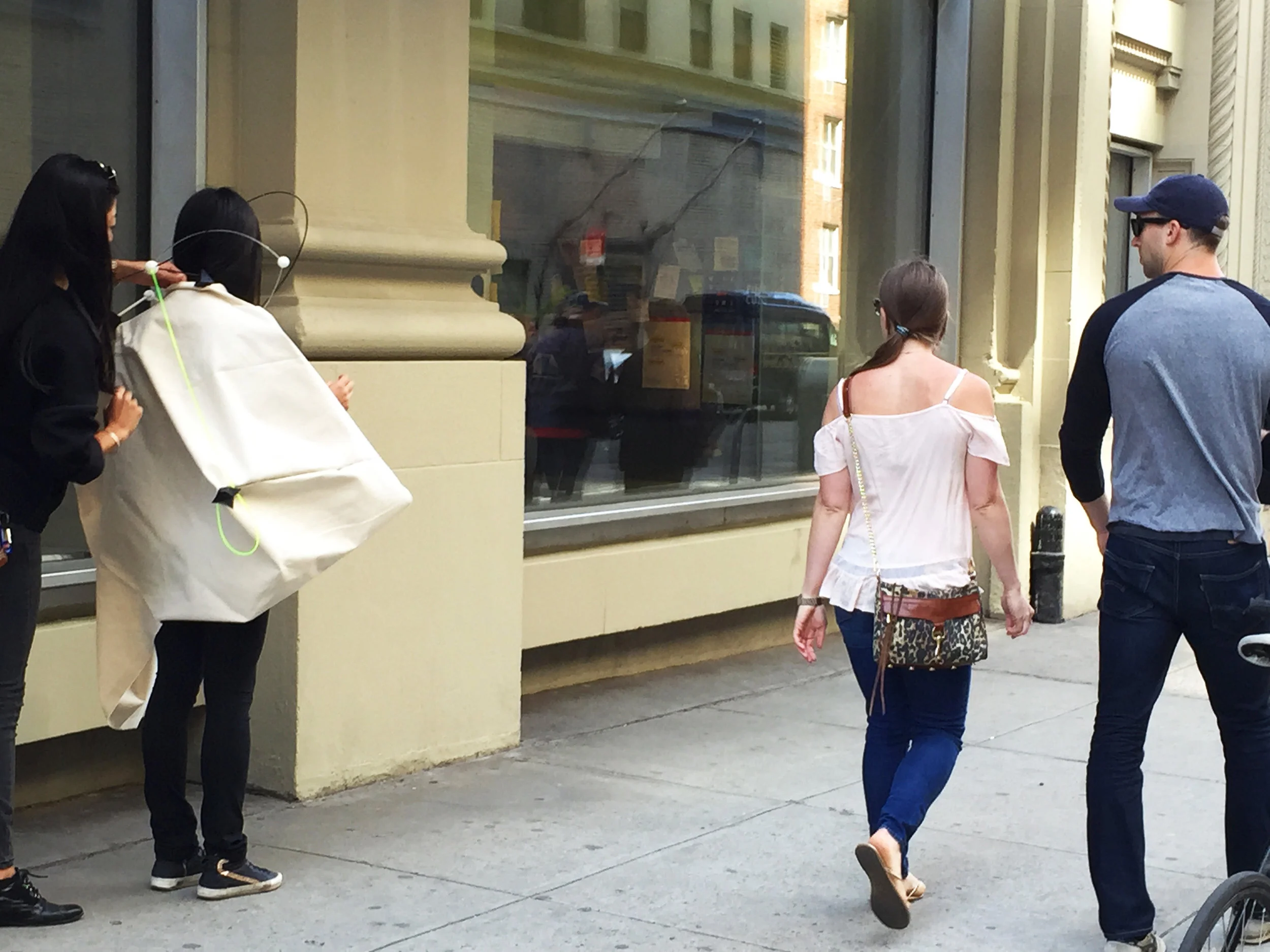 This diagram visualizes the goal of our project: use the plus sign pattern to create three-dimensional fashion to stimulate social interaction and conversation.